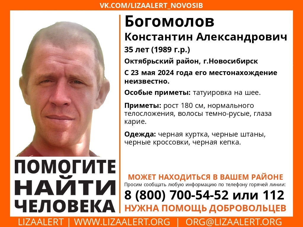 В Октябрьском районе Новосибирска пропал 35-летний Александр Богомолов. Его местонахождение неизвестно с 23 мая 2024 года, сообщает поисковый отряд «ЛизаАлерт». Приметы мужчины — рост 180 см, нормального телосложения, волосы темно-русые, глаза карие. Был одет в черную куртку, черные штаны, черные кроссовки и такого же цвета кепку. Из особых примет — татуировка на шее.