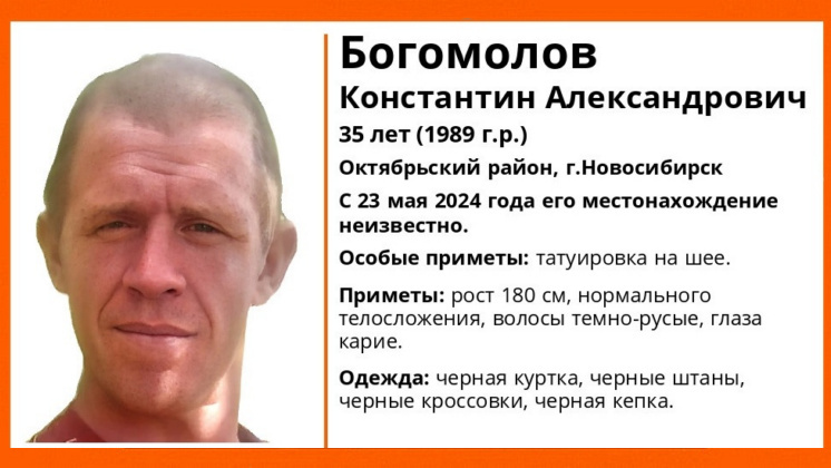 В Октябрьском районе Новосибирска без вести пропал 35-летний Константин Богомолов. С 23 мая 2024 года его местонахождение неизвестно, теперь мужчину ищут волонтеры поисково-спасательного отряда (ПСО) «ЛизаАлерт». Приметы пропавшего: рост 180 сантиметров, нормального телосложения, волосы темно-русые, глаза карие. В день исчезновения был одет в черную куртку, черные штаны, черные кроссовки и черную кепку. Из особых примет волонтеры отметили наличие татуировки на шее. Если у вас есть информация о местонахождении Константина Богомолова, сообщите об этом по телефону ПСО: 8-800-700-54-52 или наберите 112. Ранее «Вести Новосибирск» писали, что в областном центре без вести пропала 21-летняя девушка с татуировками на руках.