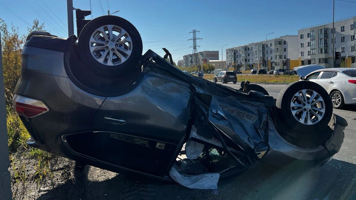 Nissan перевернулся при столкновении с Kia в Ноябрьске, пострадали две женщины