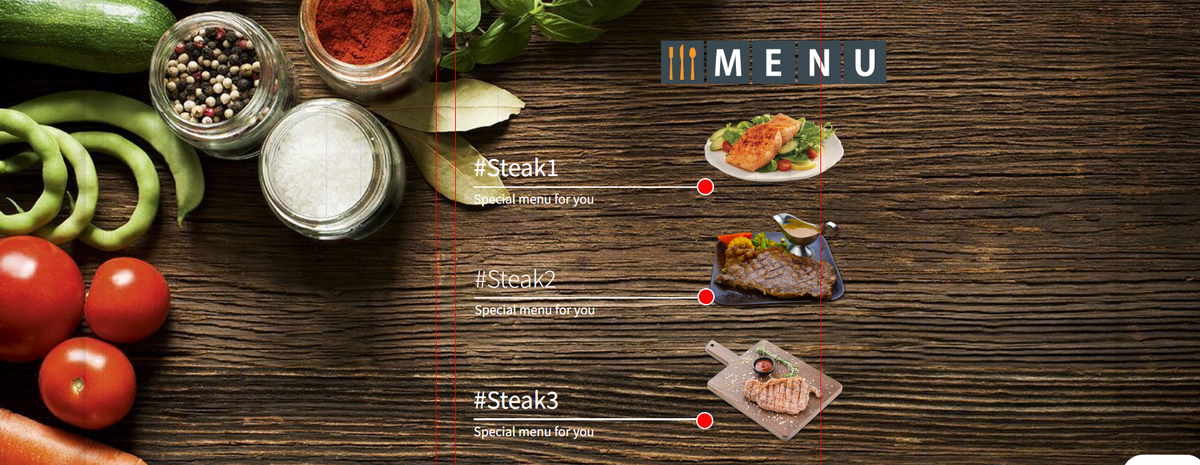 Всем привет, уважаемые пользователи Tilda! Сегодня рассмотрим пример, как создать псевдо pop-up из Zero Block в Tilda. Вначале давайте разберёмся, что же такое псевдо pop-up и чем он отличается от обычного pop-up окна. Во-первых: когда открывается обычное pop-up окно, мы видим, что оно находится поверх всего сайта, на более высоком слое. У нас блокируется скролл, и мы не можем ничего сделать, пока не закроем это окно. Псевдо pop-up — это окно, которое не блокирует сайт, мы вообще не видим, что оно открылось. Это своего рода иллюзия: на самом деле, когда оно открывается, мы видим, что происходит некая манипуляция с элементами в данном блоке. Псевдо pop-up действует на блок, для которого он предназначен. Создаём Zero Block и удаляем из него всё лишнее. Добавляем фон и картинки с едой. Задаём этим картинкам ссылки: #steak1, #steak2, #steak3. Адаптируем этот блок под все виды устройств и создаём копию. Создаём ещё две копии данного блока и вносим правки в контент и слои. Добавляем блок Т1