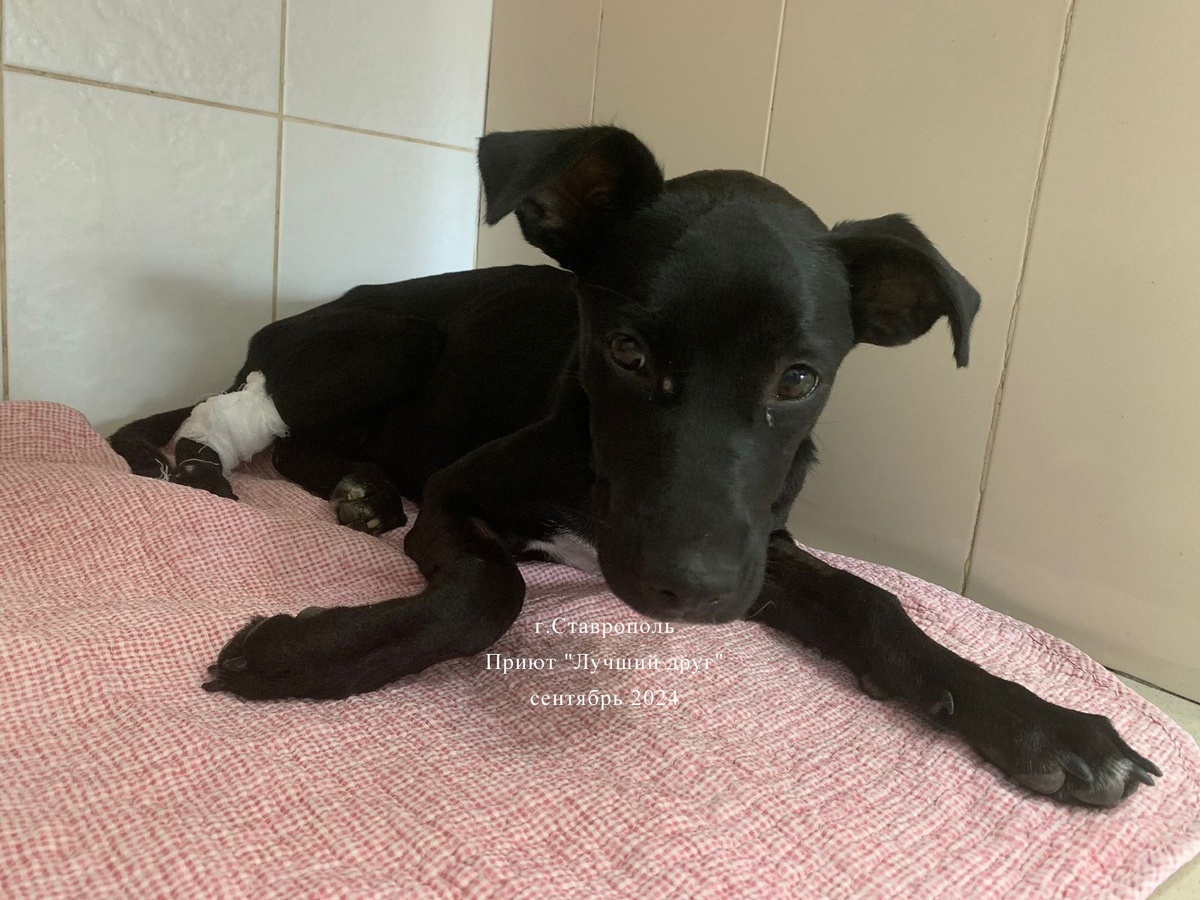 Люди ехали по своим делам, остановились на безлюдной обочине и зашли в заросли кустарника. А там лежит черная собака, на лапы не встает, перемещается с трудом ползком, от еды отказалась. Люди погрузили найденыша и отвезли в Ветцентр. Это оказалась молодая собака, подросток, у нее застарелый перелом передней лапы, с которым, вероятнее всего, уже ничего сделать нельзя. Но основная проблема не в хромоте, а в запущенном пироплазмозе и анемии, у собаки очень плохие анализы, слизистые совершенно белые, как будто крови в собаке уже не осталось... Назвали собаку Руна, потом придется имя изменить, Руна в приюте уже есть. Да, впрочем, сейчас это не важно, состояние у нее тяжелое, лишь бы выжила собака, с именами потом разберемся. Для нее сразу же отвезли донора, пёс Снаряд из отлова отважно поделился с черной незнакомкой своей кровью.