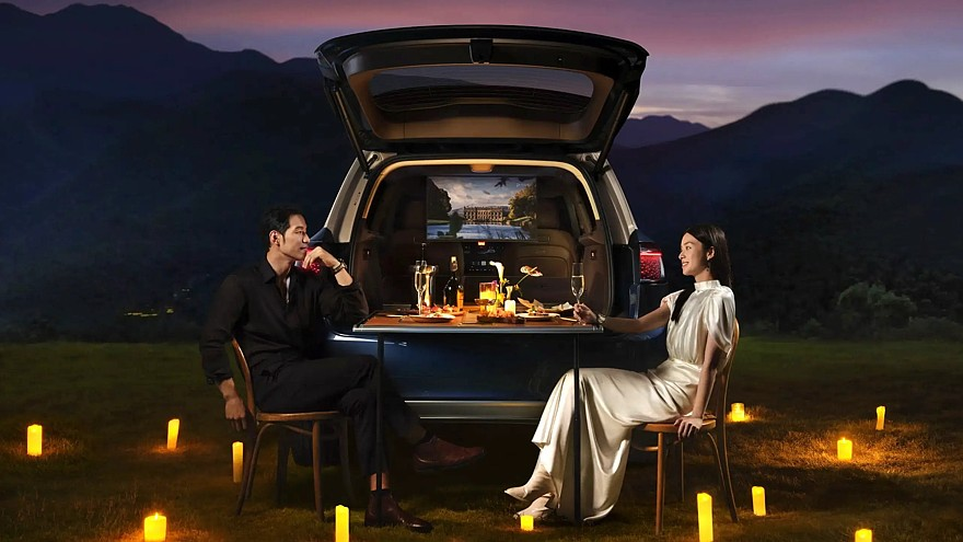 Основные функции мультимедийного оборудования доступны и в 5-местной модели, как и в 6-местной. Матричные фары способны выводить текстовые сообщения и проецировать простые рисунки на землю, в то время как встроенный кинопроектор позволяет создать уличный кинотеатр при наличии подходящей стены или натяжного панно. В салоне имеется второй кинотеатр с собственным проектором и спускающимся с потолка 32-дюймовым экраном. Также есть три экрана в передней панели: 12,3-дюймовый информационный, 15,6-дюймовый мультимедийный центр и 16-дюймовый развлекательный экран для переднего пассажира. Приборная панель дополнена 75-дюймовым экраном дополненной реальности на лобовом стекле. Автомобильная аудиосистема Huawei мощностью 2080 ватт в формате 7.1.4 включает 25 динамиков и совместно работает с атмосферной подсветкой салона на основе светодиодов.