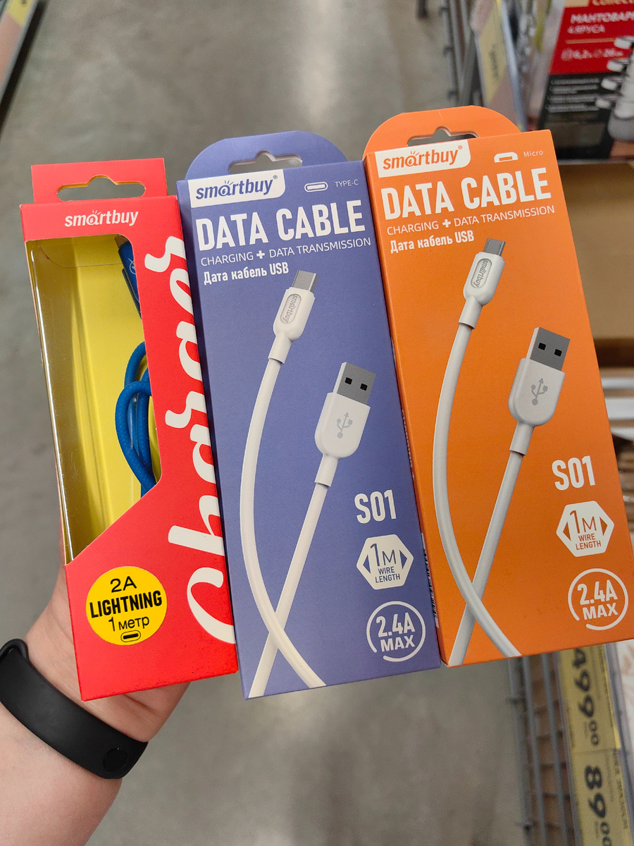 Здравствуйте! Успела сходить в магазин Чижик. Да и как не зайти, если с сегодняшнего дня открылась неделя новинок! Ух, сколько всего выставили и продолжают выгружать со склада. Что привезли? Дата кабель в коробках, разный. Для скорой зарядки мобильного телефона или другого устройства.