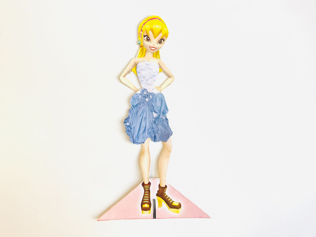 Клуб Винкс -- это итальянский мультсериал, который выходил в течение 15 лет. В России его показывали на детском канале Nickelodeon. По мотивам сериала создали много разных игрушек, в том числе бумажных куколок. Всё начинается с того, что шестнадцатилетняя земная девушка Блум встречает волшебницу Стеллу, от которой узнаёт, что, как и та, является феей. Ой, смотрите-ка, а вот и Стелла: Стелла и Блум начинают учиться в школе фей Алфея. Там Стелла знакомит Блум с Музой, Текной и Флорой. Все вместе девушки образуют клуб Винкс: Противостоят Стелле, Блум и прочим ведьмы Айси, Дарси и Сторми из школы Облачная Башня, называющие себя Трикс: Девушки из клуба Винкс образуют пары с юношами из школы специалистов: Блум и принц Скай, Стелла и Брендон, Муза и Ривен, Текна и Тимми: Ну дальше следует нешуточный замес, в процессе которого выясняется много чего интересного: Стелла -- фея Солнца, Луны и Звёзд, принцесса Солярии. Она считаетсчя самой модной среди подруг: Владелица меча Солярии — кольца, кото