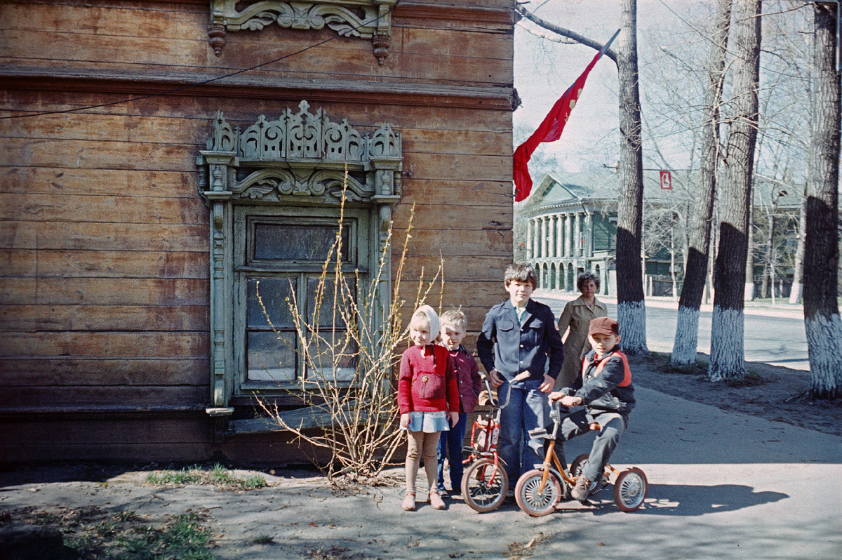 На снимке Николая Розова май 1985 года и дети позируют на улице Герцена рядом с домом, который нынче отреставрирован благодаря семье Якимовых и в нём располагается цветочный магазин. Здание известно в краеведении как "Дом Панова", а название идёт от фамилии владельца - купца Григория Семёновича Панова. Дом значим ещё тем, что в интерьере сохранились росписи предположительно первой половины 19 века, в том числе с пейзажными мотивами в «голландском стиле», выполненные масляной краской по штукатурке.