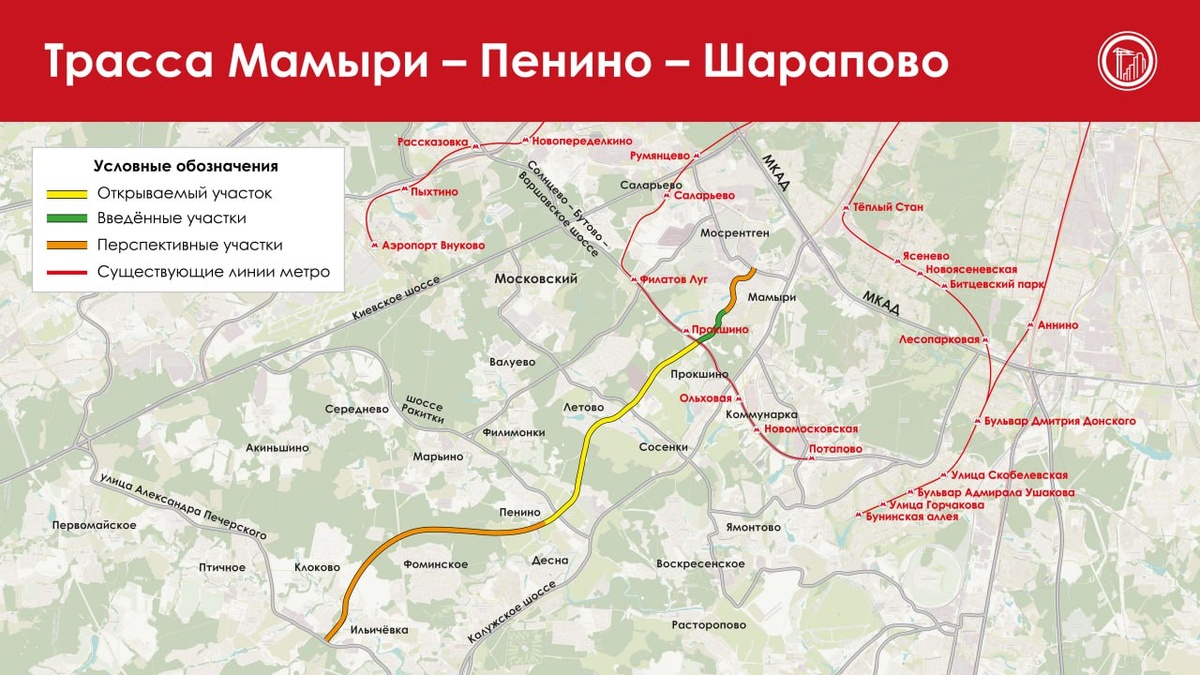 Стартовало движение по новой важной дороге. Торжественно открыта первая очередь трассы Мамыри — Пенино — Шарапово. «Создание дорожного каркаса — один из приоритетов программы развития ТиНАО. Ключевой проект на ближайшие годы — строительство дублёра Калужского шоссе, - написал в своем телеграм-канале мэр Москвы Сергей Собянин. - Дорога длиной около 23 км пройдёт от станции метро «Тютчевская» до Троицка». В данный момент начал функционировать третий участок дублера Калужского шоссе. Он пролегает по следующему маршруту: автодорога Солнцево — Бутово — Варшавское шоссе до Середнево — Марьино — Десна. Первые два были возведены и запущены в эксплуатацию еще в 2021–2022 годах. Кроме того, новый участок магистрали стал самым крупным в составе дублера. Его протяженность составляет почти 10 км. В ходе его строительства создано 4 искусственных сооружения, проведено переустройство более сотни километров инженерных коммуникаций, для комфорта жителей домов по близости с дорогой установлены шумозащитн