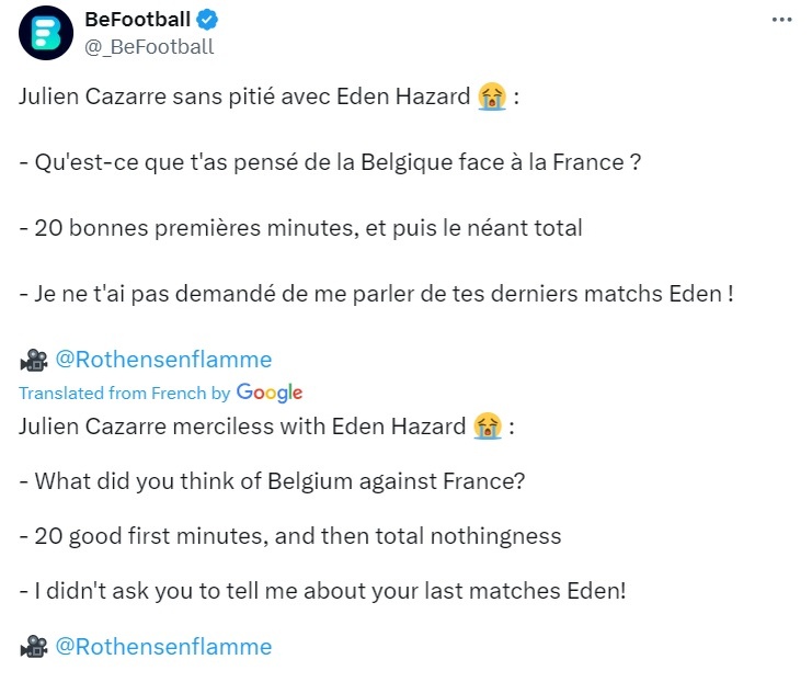 «Я не просил тебя рассказывать о твоих последних матчах, Эден»: Азара троллят после игры Бельгия-Франция