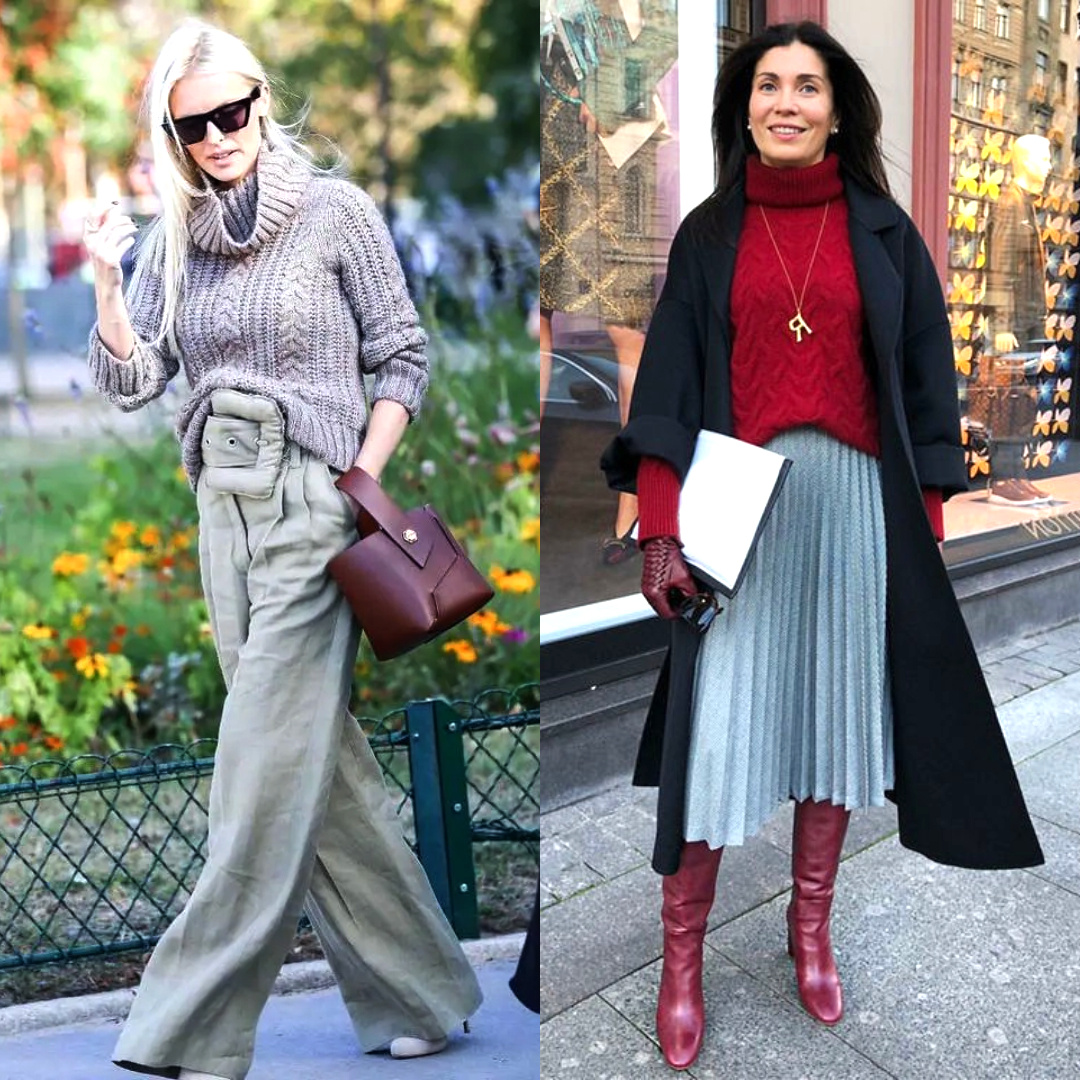 Стоит отметить комфорт и уют в подобной одежде. Какой бы не был выбран наряд, свитер станет главным элементом. Цвета в моде по-прежнему пастельные, бордо, зеленый и отсутствие принтов.