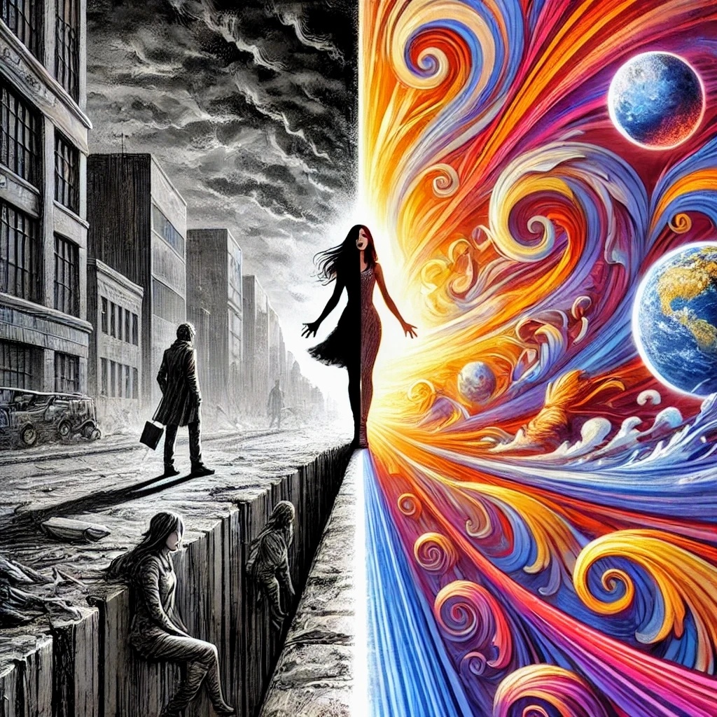 Улицы города казались ещё более серыми, чем раньше, но на этот раз Анна видела всё иначе. Там, где раньше были только монохромные здания и лица, теперь мелькали яркие пятна: красный знак на двери, жёлтая шапка на ребёнке, зелёный мусорный контейнер на углу. Всё это было ошеломляюще ярким и пугающе новым. Она чувствовала, как её мозг не справляется с наплывом новой информации. Ей казалось, что окружающий мир ломается, словно границы реальности истончаются.
