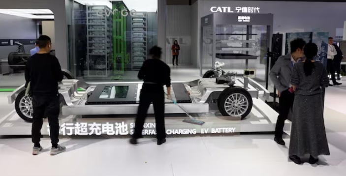 Аккумуляторная батарея электромобиля (EV) представлена на стенде производителя аккумуляторов CATL во время первой Китайской международной выставки цепочек поставок (CISCE) в Пекине, Китай, 28 ноября 2023 г. REUTERS/Флоренс Ло.