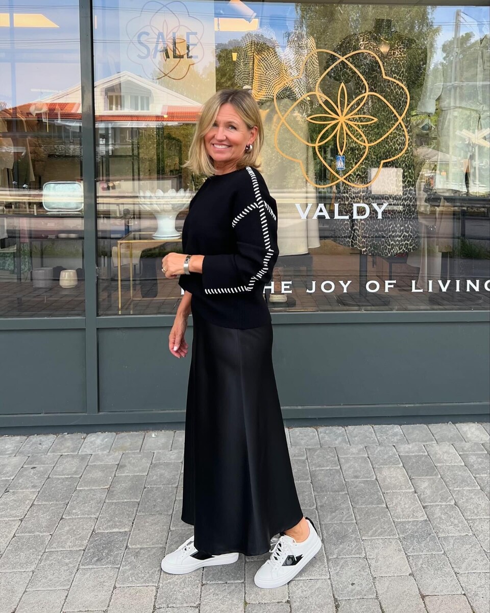 Черный цвет выглядит элегантно и дорого. Но если монохромный сет вам кажется слишком мрачным, просто «разбавьте» его белыми кроссовками. Красиво и удобно!