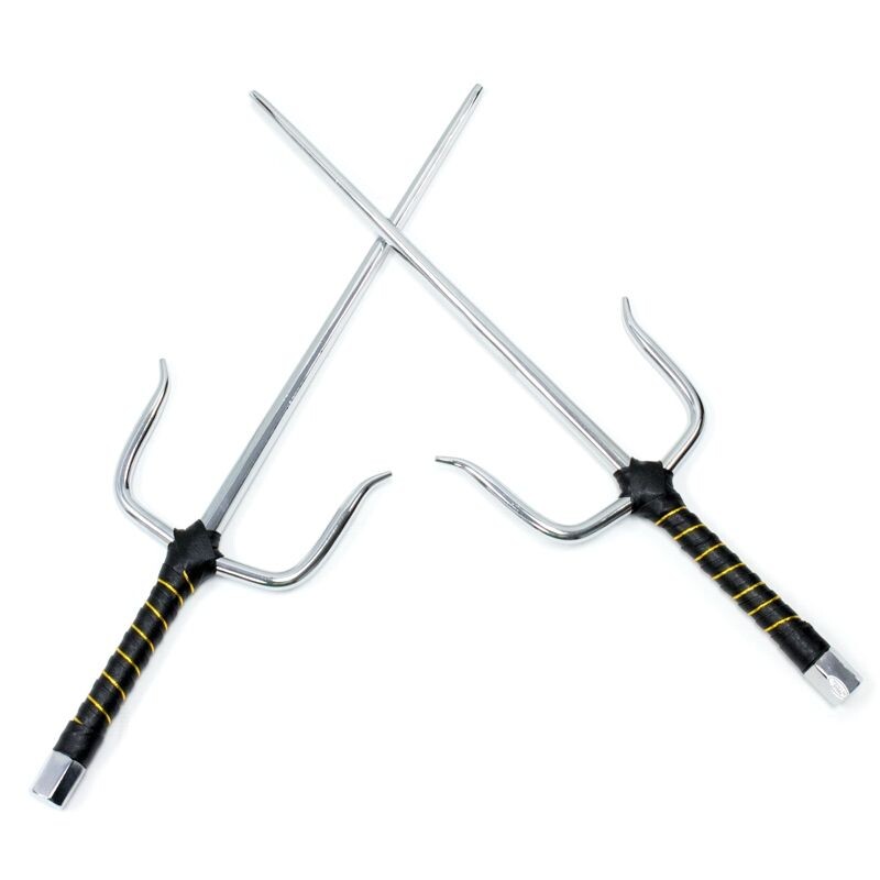 Сай (釵) – колющее клинковое холодное оружие типа стилета, внешне похожее на трезубец с коротким древком (максимум на полторы ширины ладони) и удлинённым средним зубцом. Считается традиционным оружием для жителей Окинавы (Япония) и является одним из основных видов оружия Кобудо. Боковые зубья образуют подобие гарды и могут выполнять также и поражающую роль за счёт заточки. Наиболее вероятно, что саи произошли от парных ручных вил для переноски сена либо трезубцев для рыхления земли, которые рюкюские крестьяне могли носить при себе. Однако существует мнение, что трезубец-сай существовал независимо и являлся именно оружием, а не сельхозинструментом. Части сай · Моноучи, тело центрального клинка, может быть круглым или граненым. · Йоку, гарда в форме боковых зубцов, которые, как правило, симметричны, но конструкция манджи, разработанная Тайра Синкеном, включает обращенную в противоположную сторону йоку, напоминающую свастику (символ манджи), от которой она и берет свое название. · Цуме, ос