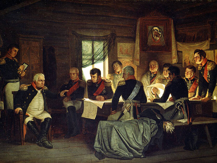 На военном совете, состоявшемся 13 сентября (1-го по старому стилю), т.е. спустя 6 дней после Бородинской битвы в подмосковной тогда деревне Фили, решался понятный вопрос: «Как поступить дальше?» Причём совет начался как чисто военный: военачальники обсуждали позицию, выбранную генералом Леонтием Беннигсеном для нового сражения. Большинство генералов признали позицию неудачной ещё до совета, поэтому прорабатывались варианты боёв в Москве.