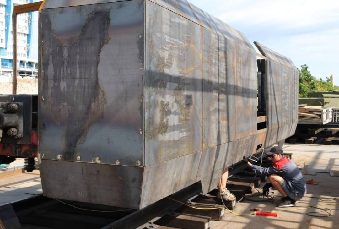 Полноразмерная модель бронепоезда времен войны устанавливается в Волгограде