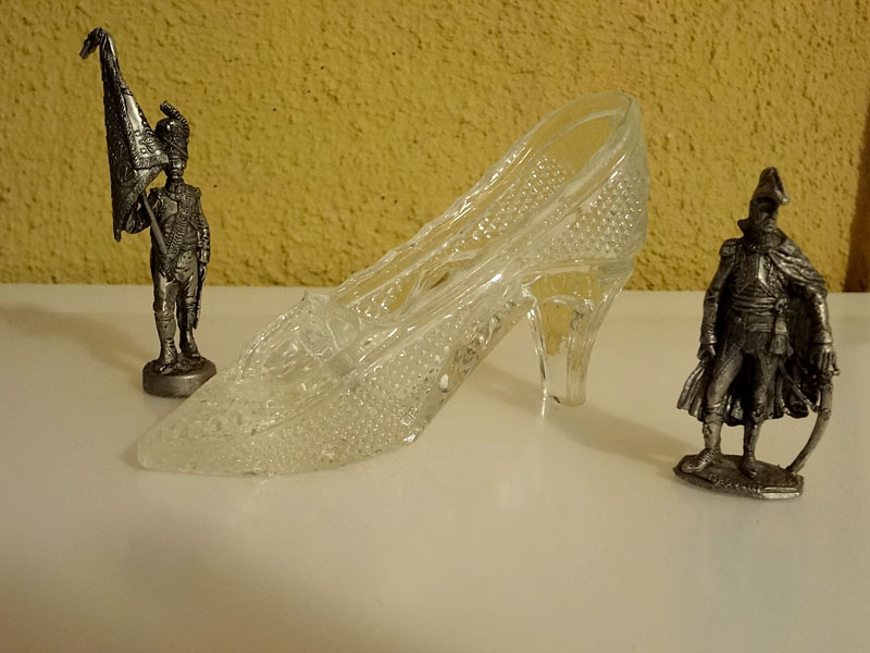 На одно из занятий я принесла самодельный «сказочный сундучок» – обычную коробку, обклеенную подарочной бумагой. В ней лежали различные предметы, связанные с сюжетами сказок. Дети по очереди их доставали и пытались определить, в какой сказке живет эта вещь. Как я и ожидала, никаких затруднений не вызвали лишь два предмета: хрустальный башмачок (в повседневной жизни он служит пепельницей) и оловянный солдатик. А вот это что такое?