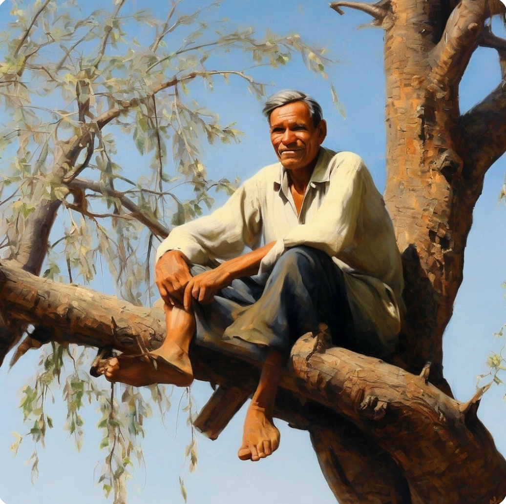Сельков с Ветровым решили выручать друга, вооружились вилами… Вышедший в этот момент хозяин бычка, увидав мужиков с вилами, остолбенел, не понимая происходящего. Не поглядев на берёзу, к которой привязывал бычка, спросил удивлённо: