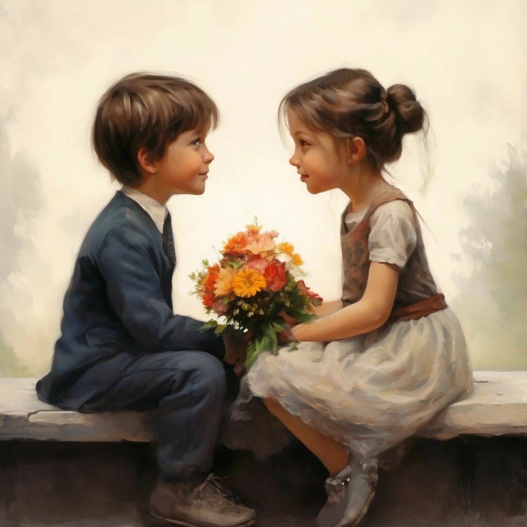 В маленьком, уютном городке, среди цветущих садов и зелёных улиц, жили двое детей — Миша и Катя. Они познакомились в садике, когда им было всего по пять лет. Миша был весёлым мальчиком с непослушными кудряшками и яркими, любопытными глазами. Катя — смелая девочка с золотистыми локонами и безумно доброй улыбкой. Их дружба началась с простого «привет» и закончилась долгими часами совместной игры во дворе. Каждое утро они с нетерпением ждали встречи. Вместе собирали листья, строили домики из веточек и рисовали мелом на асфальте яркие картинки. Миша всегда предлагал интересные идеи, а Катя с восторгом поддерживала его. Они были неразлучны, словно два берега одной реки, и этот связующий поток заставлял их сердца биться чаще. Прошло время, и их дружба перешла на новый уровень. Каждый раз, когда Миша заглядывал в глаза Кати, он ощущал щемящее в груди чувство, о котором не знал, как говорить. Также и Катя — её сердце замирало, когда Миша смеялся, когда он переводил взгляд на неё. Они не мо