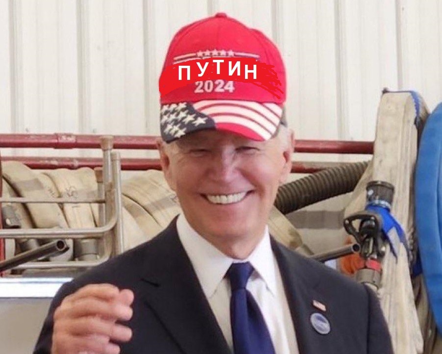 На встрече с Байденом в Пенсильвании пожарные подсунули пока ещё президенту кепку с именем Трампа. А могли бы и с Путиным.