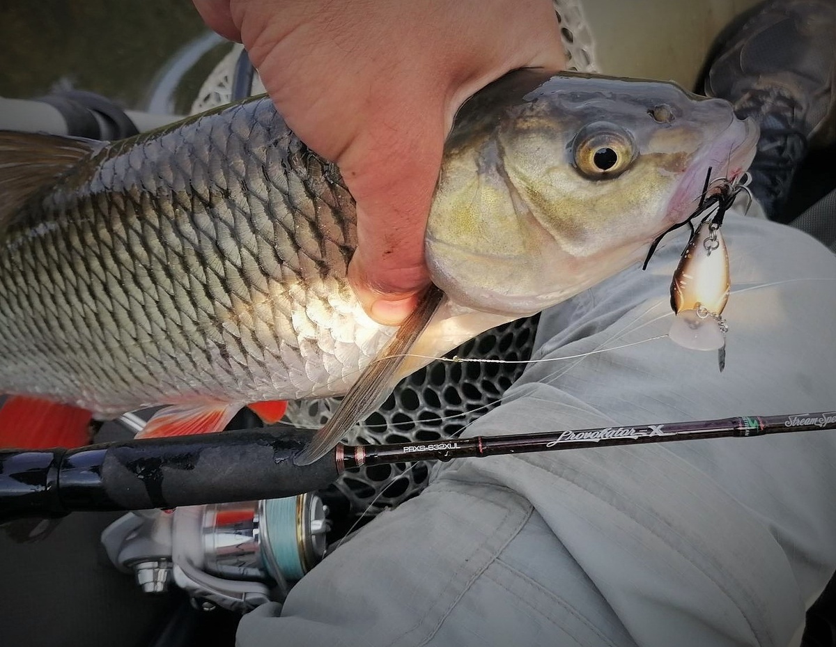 Летняя погода ушла в осень, и до середины сентября вполне можно было сплавляться по малым рекам в надежде на «белого хищника». Конечно, за две недели ситуация на малоречье довольно ощутимо изменилась. Казалось бы: солнышко светит, очень тепло, но вода за холодные ночи уже сильно остывает, так что активность голавля и язя заметно снизилась. В частности, совсем не видно всплесков искомой рыбы. За 4-5 км сплава можно наблюдать лишь круги от уклейки, подбирающей с поверхности что-то съедобное. Изменился и характер поклёвок. В конце августа голавль бил «как молотком», а теперь лишь толкает воблер. Один чернохвост шёл за крэнком несколько метров и три раза тыкал в приманку, прежде чем попытался её съесть – но взял плохо и после эффектной свечки свалился. Язи тоже хватают – и тут же сходят. У пойманного крючок оказался в краешке губы. Тем не менее, при всех стараниях одного хорошего голавля и подъязка поймать удалось. Если я ловлю хотя бы одну такую рыбу, то считаю задачу выполненной, так что