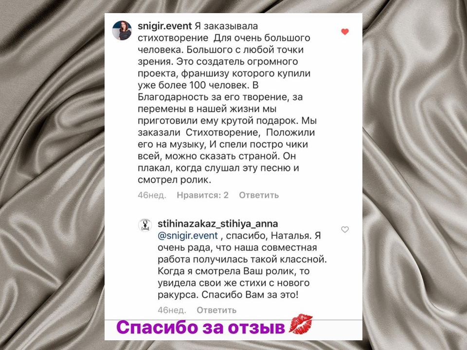 А если и Вы хотите сделать приятное своим близким и друзьям - закажите у меня для них индивидуальный стих. Пишите для этого через любые способы связи, указанные тут https://bio.site/stihiya_anna_anisimova