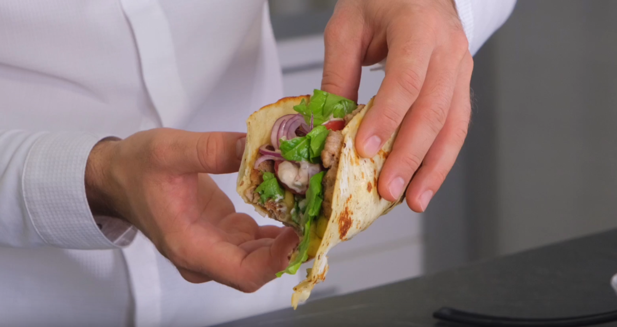 Этот удивительный бургер на лепешке переносит нас прямо на уютные улицы Мексиканского городка. Насыщенный вкус мяса на гриле сочетается с нежными листьями салата и свежими ломтиками помидора.