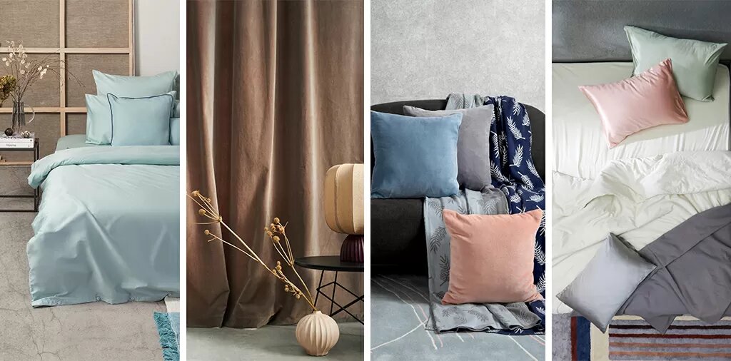 Интерпретация тренда от TKANO: постельное белье из хлопкового сатина, подушки и шторы из бархата, наволочки из натурального шелка