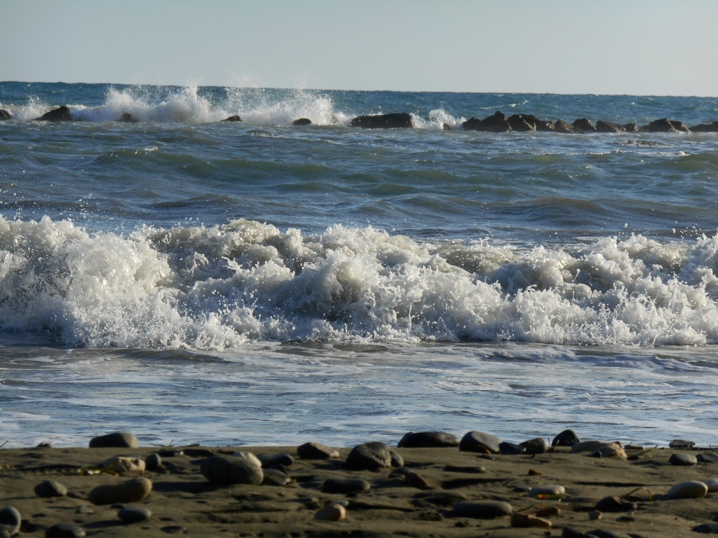 Порой кажется, что само море блестит, как серебряное блюдо, на котором сверкают россыпи алмазов. Очень красиво! Солнце совершенно летнее, даже не верится, что уже ноябрь, днем жарко, но уже мало-помалу начинается сезон ветров. И постоянно дует ветер, достаточно холодный и сильный, может это он - виновник непрерывного бега волн.