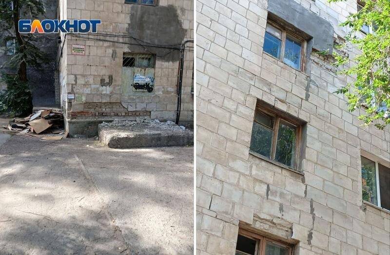 Речь в данном случае идет об общежитии на улице Пушкина, 34. Анастасия, собеседница корреспондента, проходя мимо, поразилась разрухе и антисанитарии, которая царит здесь: «Здание аварийное, просто рассыпается. На 4 этаже замазали окно, чтобы не выпало, но оно хочет убежать вместе со стенкой... Всё падает на землю, опасное место не огорожено, под окнами ходить опасно, на голову может упасть целая стена». Фото: читатель Блокнот Волжский