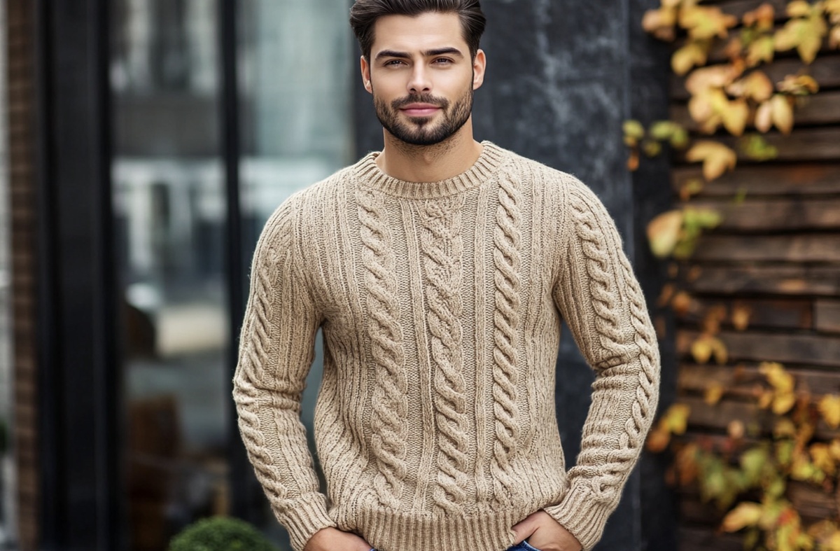 Это классический свитер с косами, который согреет зимой и станет стильным элементом мужского гардероба.