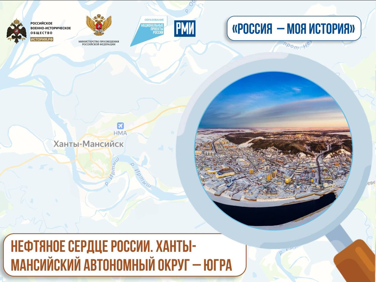 Край нефти, газа, рыбы и пушнины. Край богатых лесов и крупных рек. Ханты-Мансийский автономный округ – Югра. Один из десяти округов Российской Федерации. Первые упоминания поселения относятся к 1582 году. Тогда войско под предводительством сподвижника Ермака подошло к поселению хантыйского княза Самара – Белогородскому городку. Ханты и манси – два коренных народа Югры. От названий народов и образовано название округа.