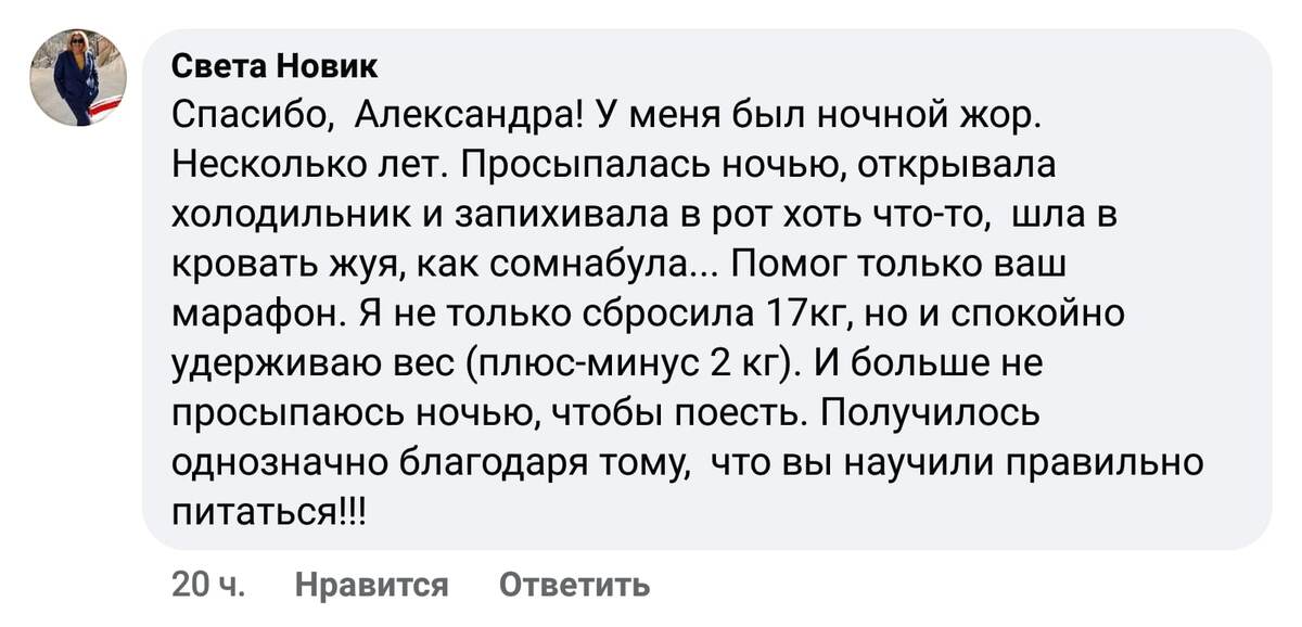 Как диетолог могу вас уверить, что переедание свойственно голоду. Т.е. ночной жор чаще всего накрывает тех людей, кто плохо ест днем. Мои клиенты подтверждают это. Как только мы даем им питание другое, где сытость утром и даже немного лишние порции в обед и на ужин, то вечерний жор сразу сходит на нет. Поэтому переедание мы лечим едой! А не голодом и разгрузкой.