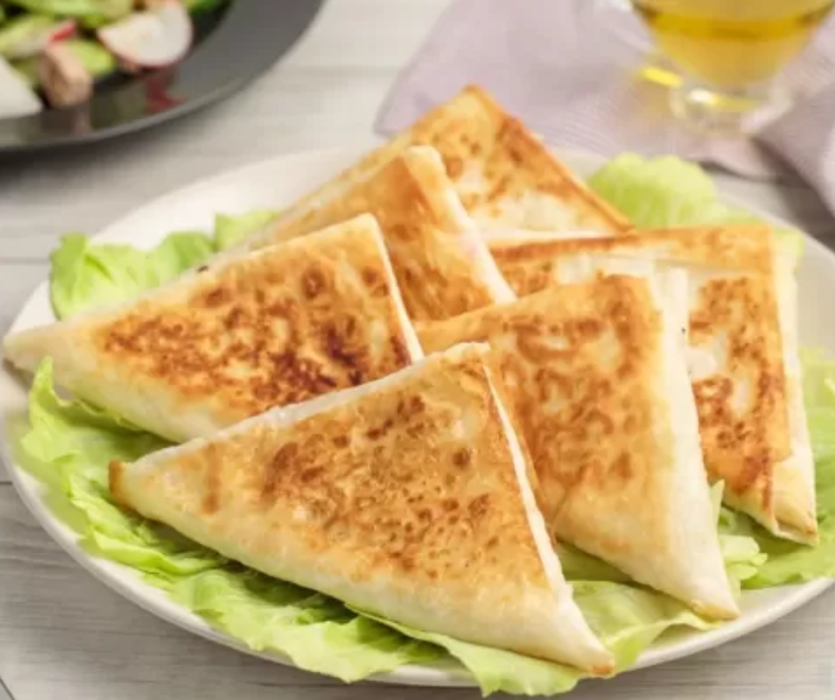 Выкладываем треугольники на сухую сковороду и подсушиваем с двух сторон на медленном огне.