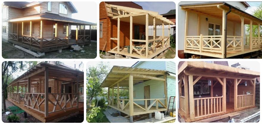 Мы будем рассматривать очень простой вариант строительства веранды на даче. Он предполагает под собой сборку конструкции при помощи шурупов и болтов из подготовленных заранее элементов. Конструкция веранды будет обладать дверью в боковой части и трехскатной крышей.