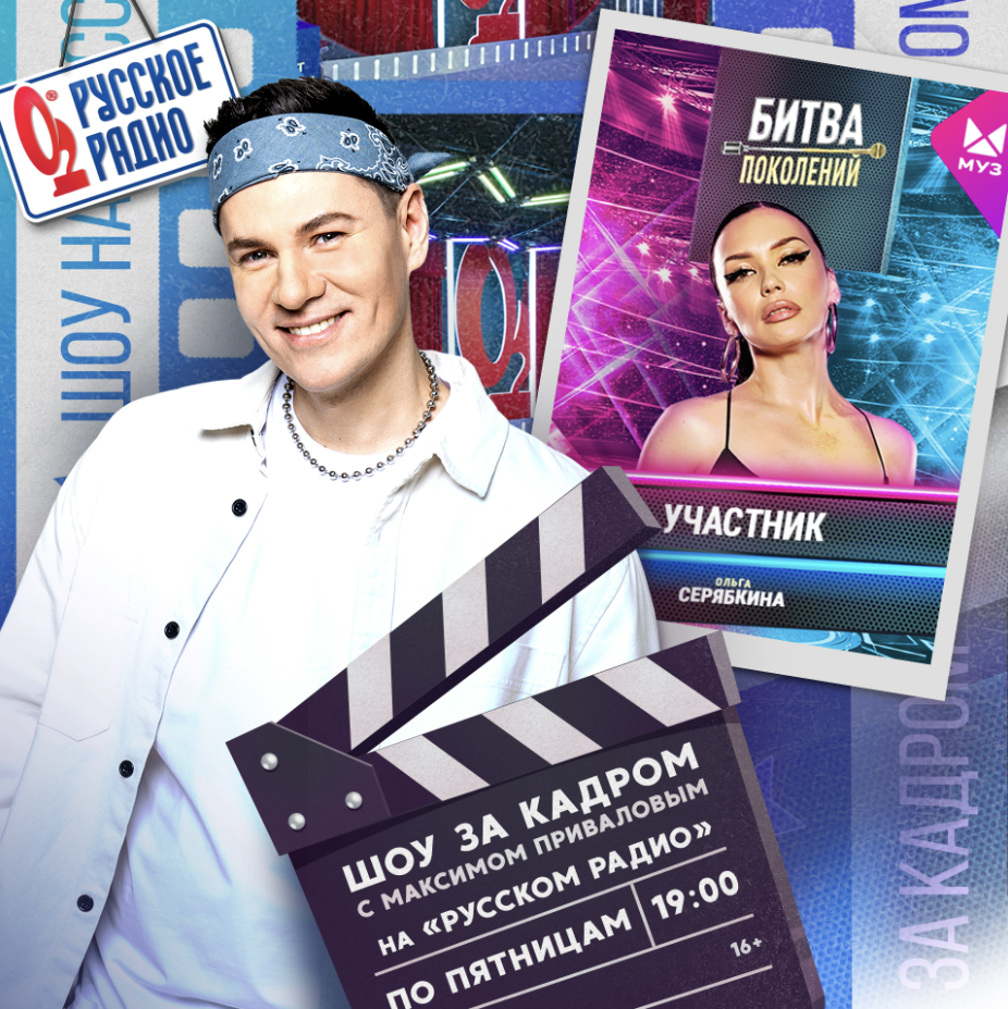 Легенды российской музыки вновь сразятся с молодыми и дерзкими артистами в музыкальных поединках, чтобы помериться силами в живом исполнении, мощности хитов, харизме и творческом экспромте. Чьё живое выступление покорит жюри? Чьи треки заиграют новыми красками в исполнении оппонента и станут новыми суперхитами? Что происходило и что происходит за кулисами грандиозного музыкального противостояния? Слушайте на Русском Радио шоу «За кадром с Максимом Приваловым «Битва поколений на МУЗ-ТВ» каждую пятницу в 19.00. Вас ждут секреты, интриги, признания, и конечно, откровения участников и представителей жюри одного из самых масштабных ТВ-проектов. Сегодняшний звездный гость – участница третьего сезона «Битвы поколений» несравненная Ольга Серябкина. Слушайте на Русском Радио шоу «За кадром с Максимом Приваловым «Битва поколений на МУЗ-ТВ» с 13 сентября каждую пятницу в 19:00. Смотрите третий сезон шоу «Битва поколений» с 14 сентября каждую субботу в 17:00 на МУЗ-ТВ! Реклама 16+ ООО «Муз ТВ Опе