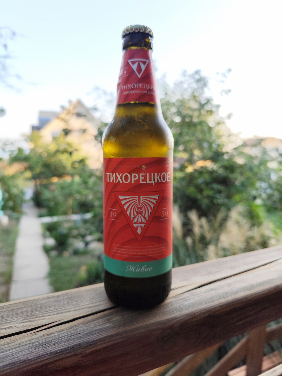 А я попью пивка и тут остануся. Стихи, ага. А пивко я попью под названием "Тихорецкое живое". Варит его "Тихорецкий пивзавод", находящийся, как не сложно догадаться, в городе Тихорецке Краснодарского края. В прошлом году я пробовал безалкашку этого производителя, оказавшуюся более-менее неплохой. Ну а сегодня попробуем алкогольную версию. Причем живую. Описание достаточно лаконичное: Пиво с ярко выраженным солодовым вкусом, для охмеления используются горькие и ароматные сорта хмеля. Бутылку я откупорил, когда ей было чуть меньше полутора месяцев при сроке годности в 180 суток. ТТХ: Пиво соломенного цвета, прозрачное. Пены много, живёт долго. Аромат зерновой. Вкус солодовый, сладкий. В сладковатом послевкусии гомеопатическая горчинка. Пиво полнотелое, пьется легко, но без удовольствия. Такое себе, баллов на пять. Под закусь пить можно, а просто так не нужно. Стоит 80 рублей за 0.45 л в местной южной разливайке. Продегустированное пиво от Тихорецкого пивзавода: Тихорецкое безалкогольное