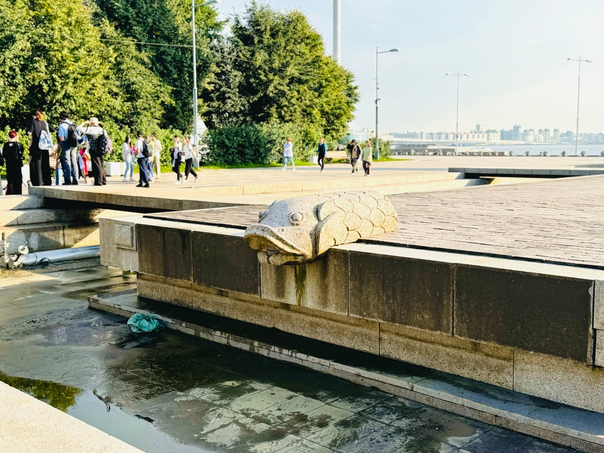 Вот совсем не ожидала такого от любимого города. Питер люблю просто безграничный любовью с самой первой минуты, как однажды приехав сюда, вышла из Московского вокзала и увидела город. Сразу поняла - мой! И как я не возмущалась на него за постоянно промокшие ноги зимой, за бесконечный ветер на набережных, из-за которых нельзя сделать ни одной нормальной фотки с распущенными волосами, из-за внезапного дождя, который неожиданно пойдет именно сегодня, просто потому что ты именно сегодня не взял с собой зонт. Но это всё все равно никогда мне не мешало восхищаться прекрасным городом на Неве. А в эту поездку меня город встретил неприветливо. Почти все места, которые я планировала посетить, в этот раз оказались разочарованием. Здесь на набережной должен быть фонтан и флаги. Большой фонтан у колонны-маяка, а также 3 флага: Российской империи, СССР и флаг России у пляжа. Очень мне понравилось, как они смотрятся на фоне Лахта-центра на фотографиях в интернете. Я приехала и что вижу - из всего пе