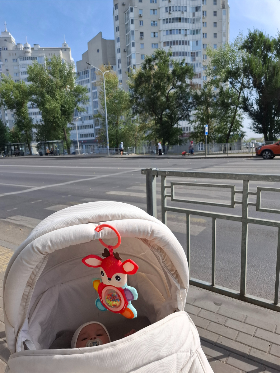 Дальше прошли квартал по той стороне. Там кстати тоже красиво гулять, много деревьев, только сегодня я думала, что точно одно нам на голову треснется. Ветер сегодня штормовой был очень сильный. По прогнозу писали до 14-15м/с. У меня с коляски чуть верхушку не сдуло, не которая капюшон, а люльку которая прикрывает. Я ее еле схватить успела, ее порывом подняло и одна клепка расстегнулась, вот она и полетела😂. Вобщем добрались мы до сквера почти благополучно.