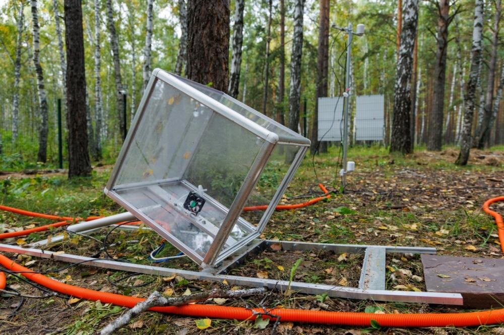 На полигоне установили современное измерительное оборудование – 2 климатические станции, 6 камер по мониторингу дыхания растений и почвы, портативный переносной газоанализатор. Углекислый газ улавливается дыхательными камерами, а его концентрацию фиксирует и изучает газоанализатор.