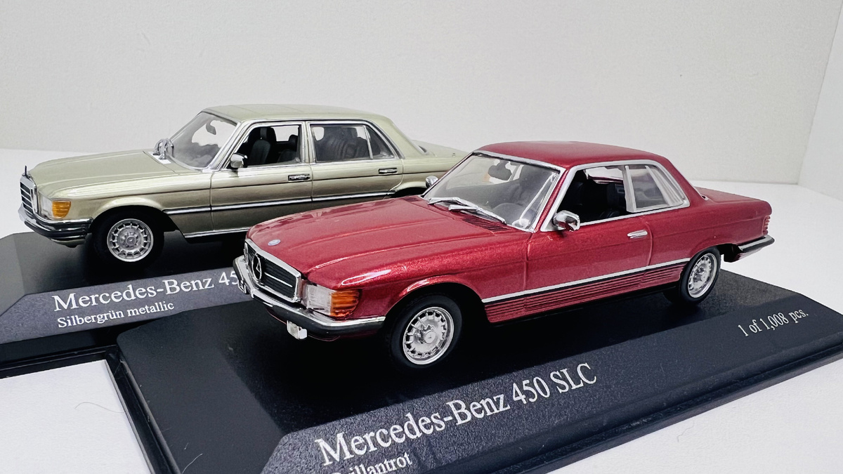 Любители масштабных моделей и ценители немецкого автопрома! Сегодня мы отправляемся в увлекательное путешествие в мир Minichamps, где два легендарных Mercedes-Benz предстанут перед вами во всей своей миниатюрной красе. В левом углу ринга - Mercedes-Benz 450 SLC 1974 года выпуска, а в правом - его старший брат, Mercedes-Benz 450 SEL 6.9 1973 года. Два титана, два гиганта, два... ну, вы поняли. Только не подумайте, что мы говорим о настоящих автомобилях - речь идет о моделях Minichamps, которые настолько детализированы, что того и гляди заведутся и уедут с вашей полки!