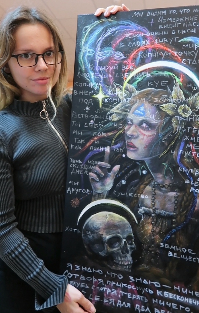 Люблю рисовать и писать песни. Решила сделать поверху хз испортила ли. Мы видим то, что ниже глаз, Изменение выше видит нас. Заключенные в свои слои, В слоях живут свои миры. Копируй точку — станет путь, Копируй всё, сможешь свернуть. Копируй куб и будешь в нём, Жить под комнатным замком. Растворись и принимай, Ты себя не потеряй. Мы как живы, так и мертвы, Как полны, так и пусты. Тень идеи с каждым днём, Внутри себя всегда растём. Мы другое существо, Хоть и земное вещество. Я знаю, что знаю — ничего. Сотворя, прикоснусь к бесконечности. В глубь смотря, терять в общем нечего. Отдам себя для дел вечности. Пост автора vdunya. Читать комментарии на Пикабу.