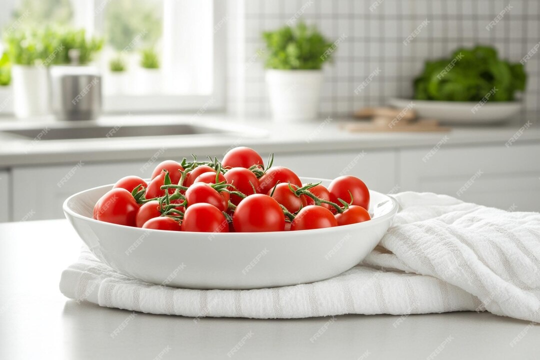 - Кладем помидоры в миску с кипятком на 1 минуту