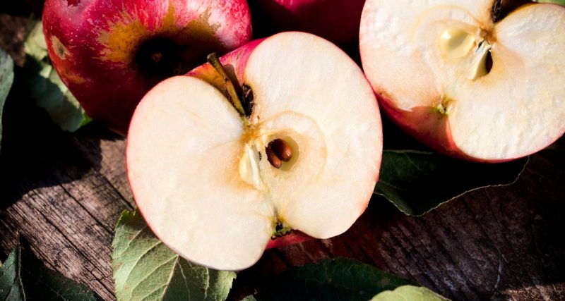 4. Яблоки нарежьте дольками. Смажьте маслом форму для выпечки.