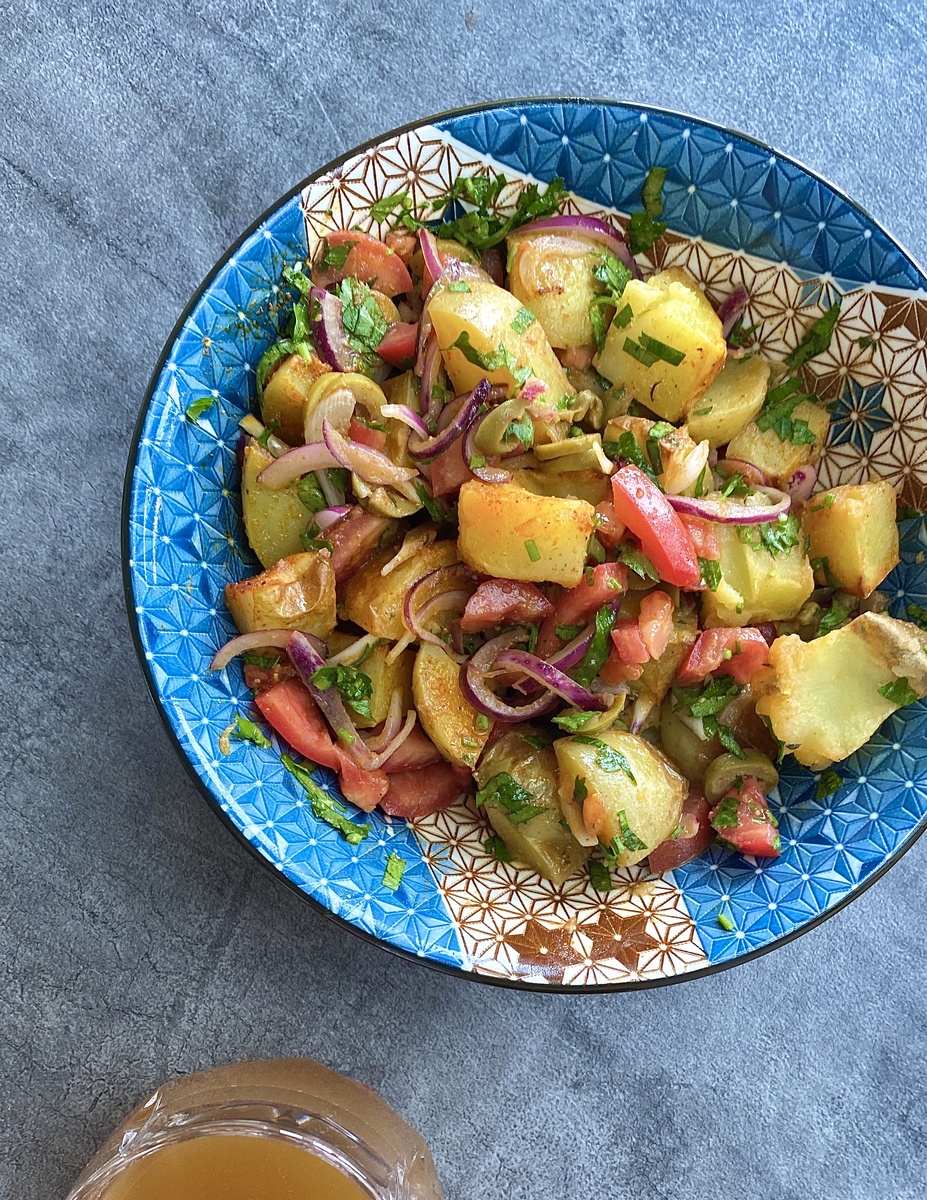 - Картофель очистите, нарежьте и запеките с маслом и солью до готовности (20-25 мин при 180-200 С°), остудите
