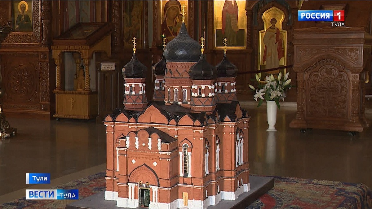 Высокий, из красного кирпича, с чёрными куполами, устремляющийся ввысь Успенский собор свою историю начинал как главный монастырский храм одноименного женского монастыря Тулы, появившегося в середине XVII века. За время существования храм пережил многое. За ветхостью несколько раз разбирался, в XIX веке был расширен, в 1898 году стал двухэтажным. В советское время, в 30-х годах, его пытались взорвать, но собор оказался очень прочным и выстоял. Тогда с него сбили купола и разместили филиал государственного архива. Позднее здание вернули церкви и провели реконструкцию. Теперь у собора появилась маленькая копия, сделанная тульским мастером. «Я очень долго присматривался к этому храму, он мне очень сильно понравился. Очень интересен по архитектуре. Ну и решил дерзнуть», – рассказал художник-миниатюрист Игорь Сокольский. Любимым делом художник занимается 20 лет. На то, чтобы создать миниатюру величественного Успенского собора, мастеру потребовалось почти четыре с половиной года. Работа кроп