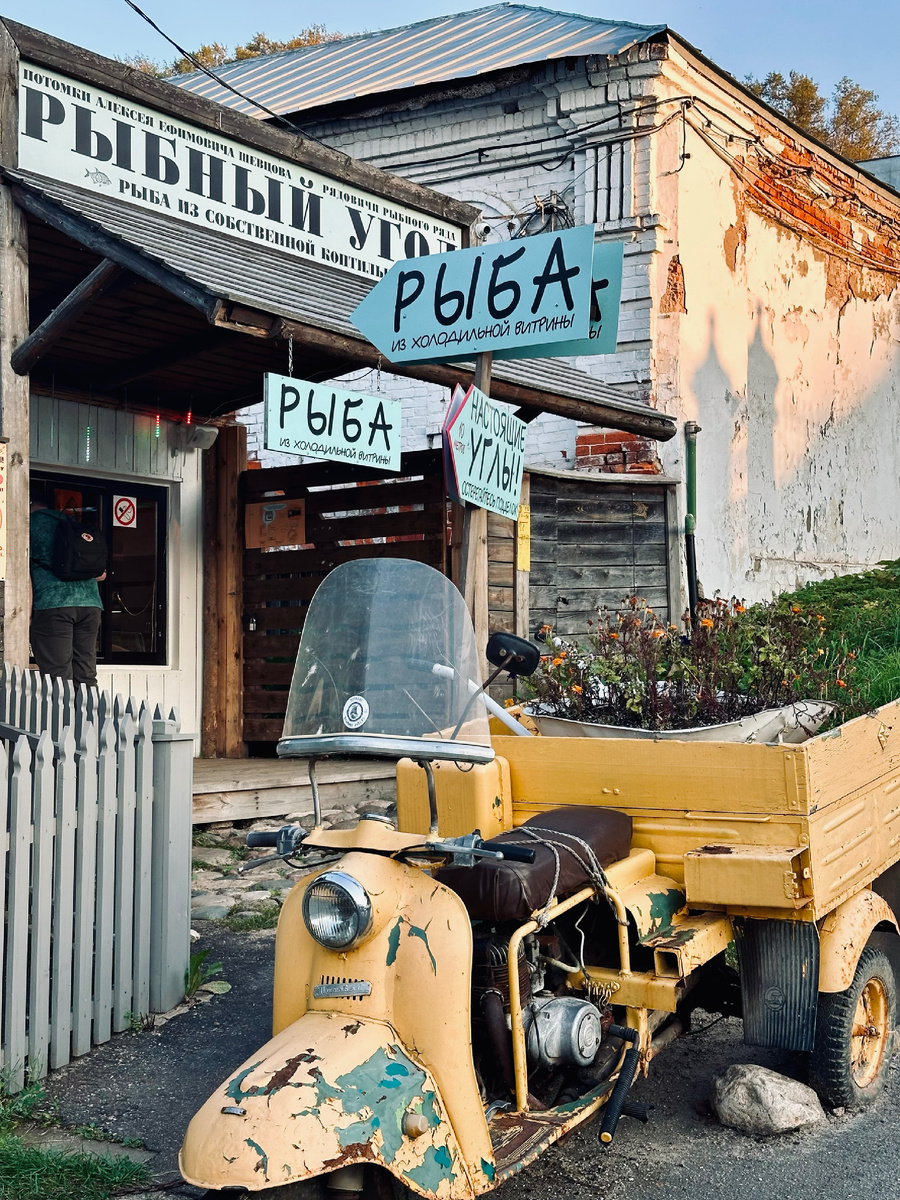 Подпишитесь на мой канал в телеграме: обзоры новых и просто интересных мест в Москве и других городах. В этом городе еда стоит недёшево: цены в ресторанах либо высокие, либо очень высокие. Как я уже рассказывал в более ранних постах, большинство заведений принадлежат предпринимателю Алексею Шевцову, который реставрирует старинные здания, превращая их в бизнес. Одной из местных гастрономических изюминок является копченая рыба, особенно лещ. Лавка Шевцова активно конкурирует с другими, призывая покупать копченую рыбу исключительно из холодильника, что особенно актуально в летнюю жару. Впрочем, тем, кто не хочет испачкать руки, стоит попробовать леща в угле — тоже местная достопримечательность. На вывеске угловой лавки написано: «Потомки Алексея Ефимовича Шевцова, хранители рецепта настоящих плёсских углов». Хотя кажется, что этому пирожку с филе без косточек сотни лет, на самом деле он был придуман в 2017 году. Пирожок вкусный, сочный и насыщенный. Также здесь можно попробовать фирменные