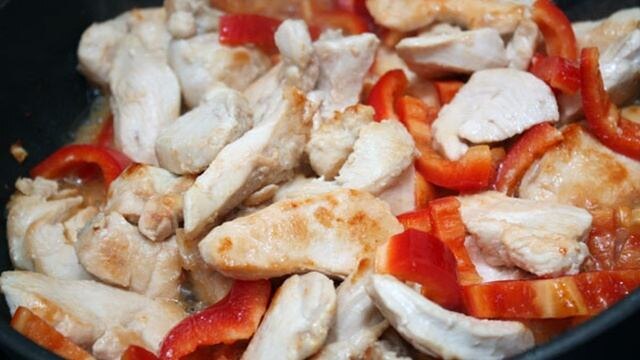 - Подготовьте мясо: Нарежьте куриное филе или свинину небольшими кусочками. Посолите, поперчите и добавьте ваши любимые специи.