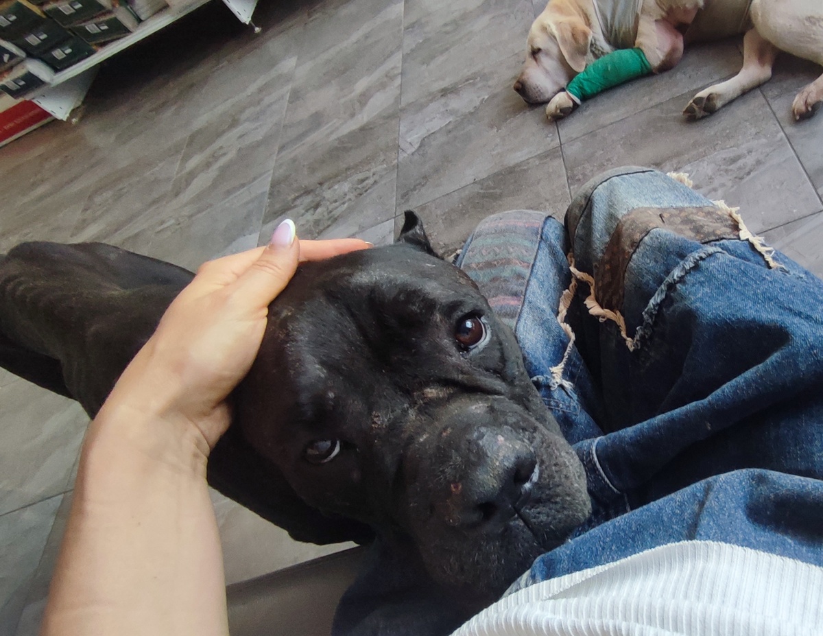 Глядят на нас и взгляд не сводят... Наши неженки. Они так любят ласку и обнимашки. Пожалуй, после еды, больше всего на свете... И у нас новая напасть. Ну, как новая... Вполне прогнозируемая. Обратили внимание, что Шакира стала ходить, как на цыпочках. Вспомнили какие симптомы были у Дарфилда. Сопоставили. И полезли смотреть подушечки. Ну так и есть. Слишком нежные и мягкие. Тоненькая кожа, позабывшая, что такое нагрузки потеряла свою защитную функцию. Так бывает у собак, которые долго.... оооочень долго не гуляют и сидят взаперти. Вспомните Дарика⬇️ Ну а у нас добавилось ещё одно место для обработки. Всё равно каждый день в клинику. Уже как прописались там. Послеоперационная Кабусенька, Рыжбан, получивший в ухо от Сардельки, сестрички кане-корсо и сегодня добавилась Дусенька. Шакире на коллектив "всё равно". Лишь бы залезть к маме на ручки😅 За пару недель - отличный результат👍 Значит всё делаем правильно. Кормим, немного гуляем и как только одна рука освобождае