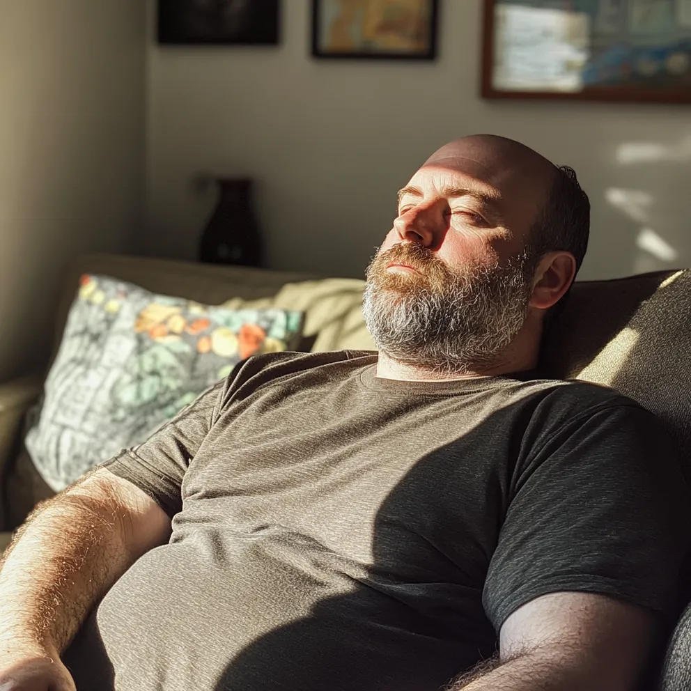Парочка осторожно поднялась на второй этаж и поочередно осмотрела остальные комнаты. В их спальне, на кровати, валялся толстый бородатый мужик.