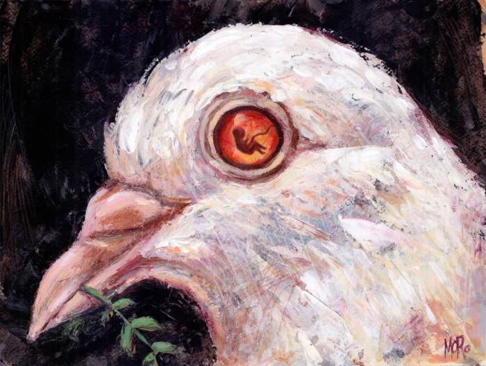 Но глаза ужаса одинаковы во все века. Палестинский мальчик с глубоким взглядом открытых глаз преследует падающую звезду и в него попадает бомба. С таким же выражением лица несколько десятилетий назад маленький еврей согнулся от боли перед лицом смерти и младенца в Нагасаки, указав на небо перед ужасом варварства.