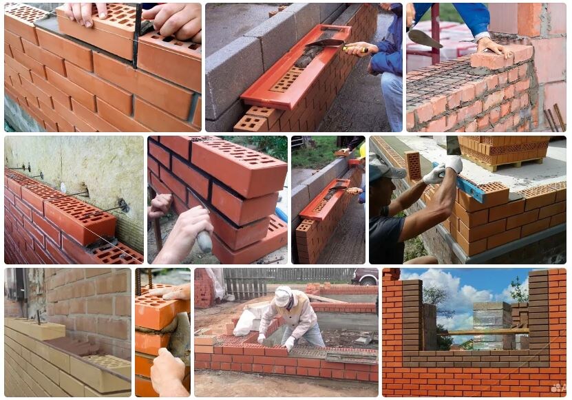 Действительно при укладке кирпича (любого вида) применяются прутики. Два из них длинные, а один короткий (вертикальный). Длинные укладываются горизонтально по краям кладки (с обеих сторон). Вертикальный (короткий) придерживается на время рукой. Такой метод укладки долгий и требует аккуратности и внимания. А результат очень красивый.